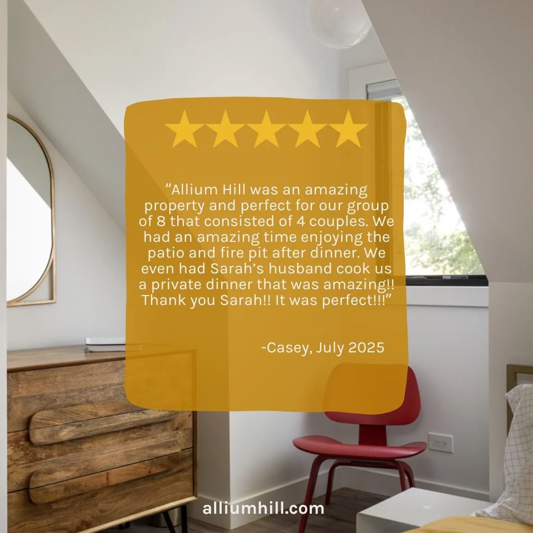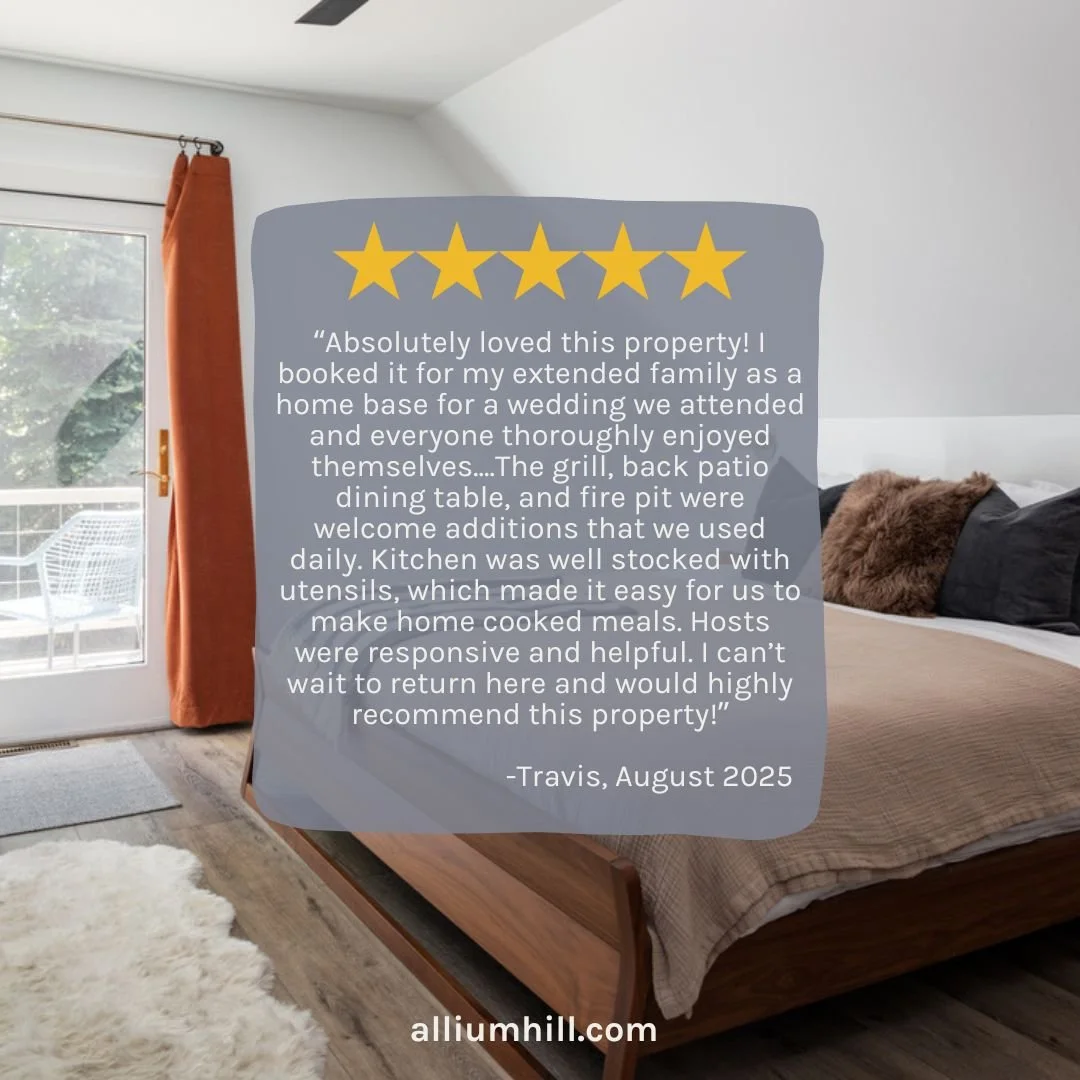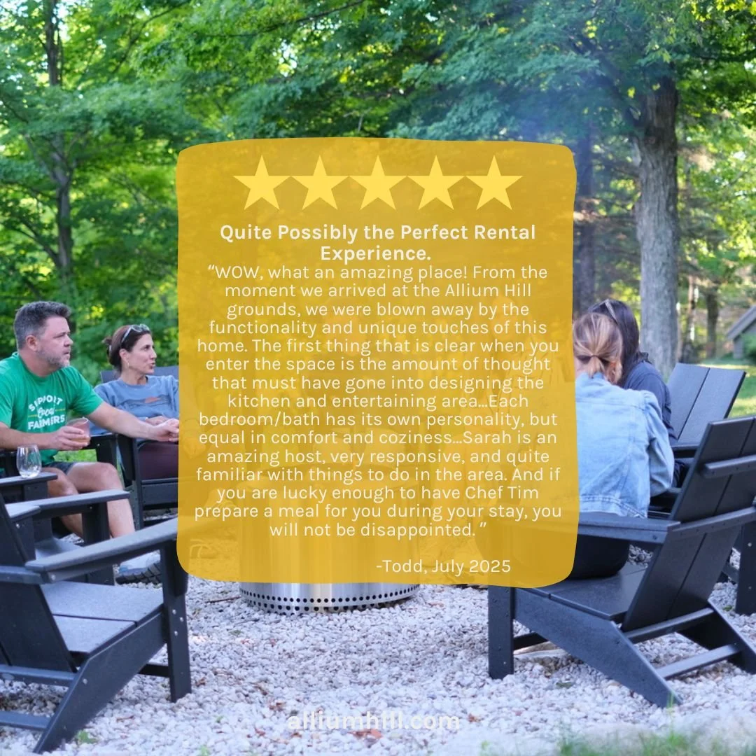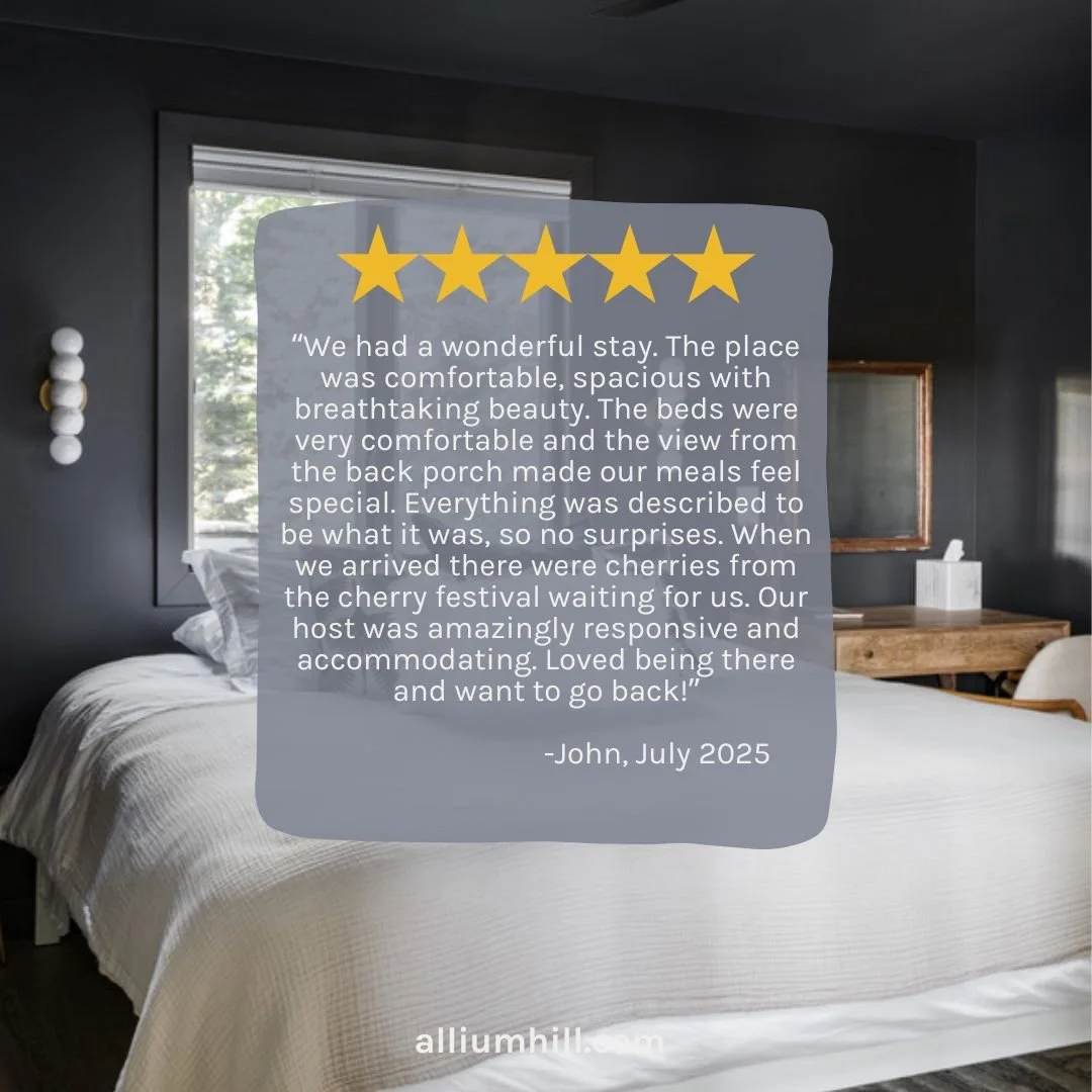 Allium Hill is ideally located in the countryside of Leelanau County, 15 minutes from Downtown Traverse City, 25 minutes from Sleeping Bear Dunes National Lakeshore beaches and perfectly situated as a jumping off point for beach hopping, wine tasting, leaf peeping and exploring the small towns of the Leelanau Peninsula. Guests will receive a guidebook of local faves.